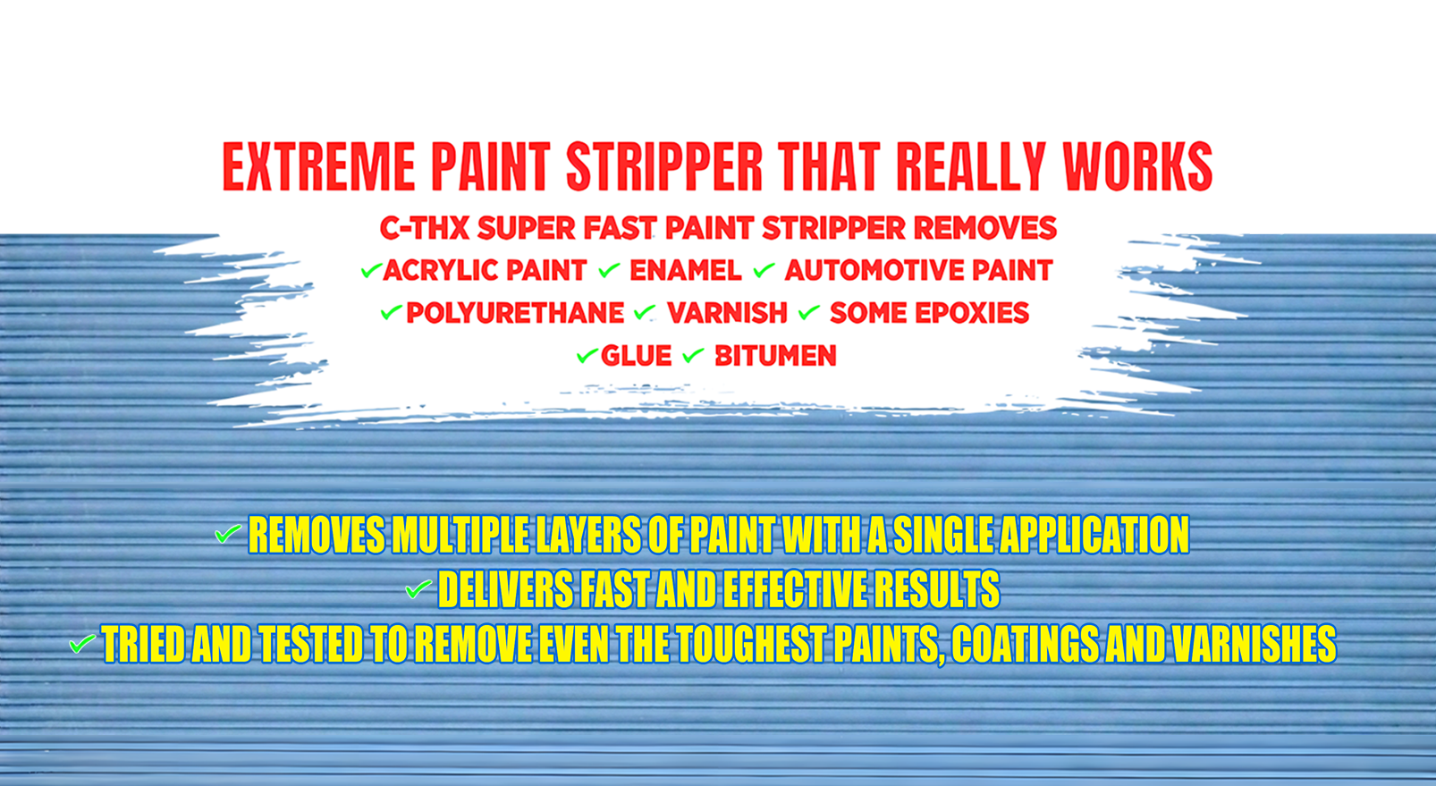 C-THX SUPER FAST PAINT STRIPPER works by penetrating through thick layers of paint and tough industrial coatings. It loosens the bond between the coating and the surface so it can be lifted away with less effort.